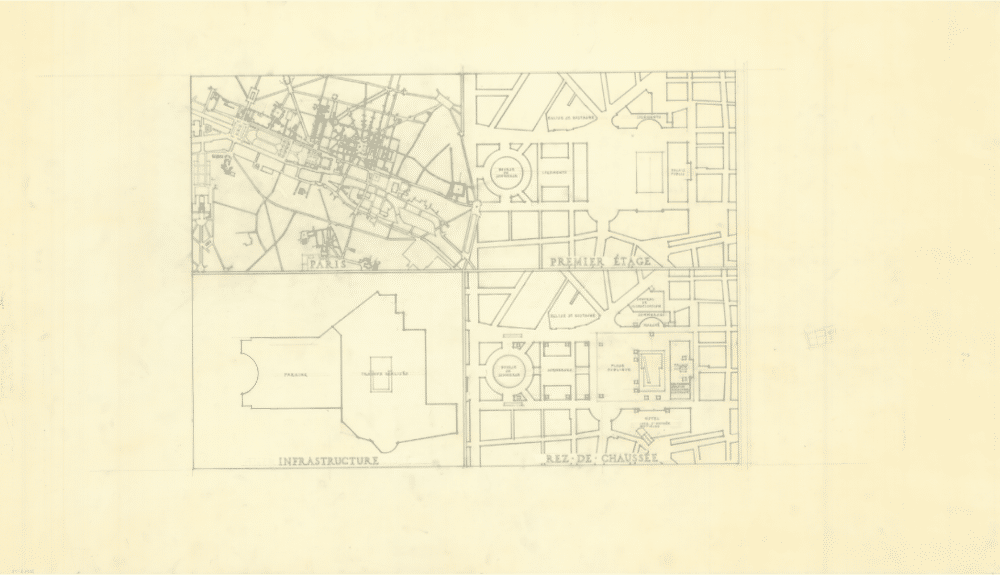 The National Building Museum Collections team recently catalogued and digitized a 1970s collection of architectural sketches and drawings by architect John Blatteau for a proposed building complex in the center of Paris. This new design was to be erected where Les Halles, a glass and iron structure designed by Victor Baltard, stood for a century before being demolished to great outcry by the public.